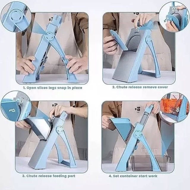 Variedad de Cortes: Con 4 modos de corte diferentes y más de 40 preajustes, podrás experimentar con una amplia gama de opciones de corte. Desde papas hasta frutas y verduras, la versatilidad está a tu alcance.
